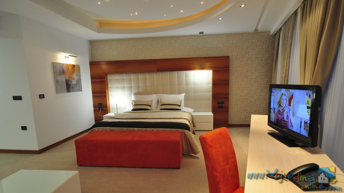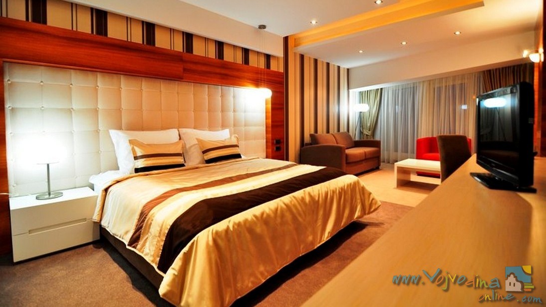 Enterijer je savremen, jednostavnih linija, toplih boja, što čini osećaj dobrodošlice. Sadrži 49 soba i 2 apartmana. Prateći vrhunske standarde, sobe su opremljene sa svim potrebnim sadržajima. Imaju idiličan pogled na centar grada i odličan su izbor za sofisticiranog gosta. U sobama su na raspolaganju: direktna telefonska linija, besplatni bežični i mrežni internet, kablovski TV program, mini bar sa raznovrsnom ponudom pića, mogućnost termoregulacije, sef, prostrano kupatilo sa kadom i fenom za kosu.