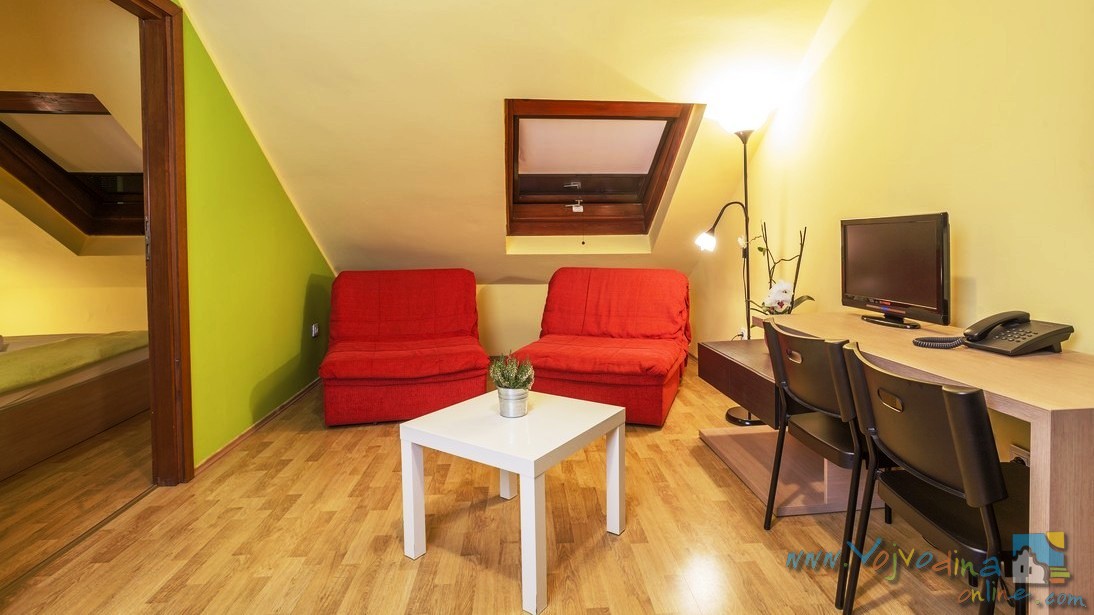 Sve sobe poseduju: LCD TV, mini bar, klimu, besplatni bežični internet. Sve apartmane čine dve prostorije. U dnevnom boravku se nalaze ležajevi za dve ili tri osobe, a u spavaćoj sobi i krevet sa francuskim ležajem. Sadrže i zasebno kupatilo sa kadom ili tuš kabinom, čajnu kuhinju, LCD TV, besplatan bežični internet, mini bar, klima uređaj i telefon sa slobodnom linijom.